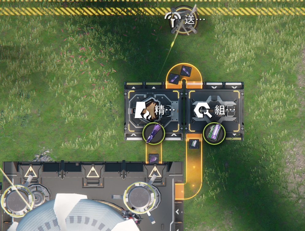 適当に精錬機や粉砕機などをを置いて加工しておくだけ。序盤としてはおすすめです。溜まった在庫は時間があるときにその先の加工ラインを作って消化すればいいので、拡張もしやすくなります。