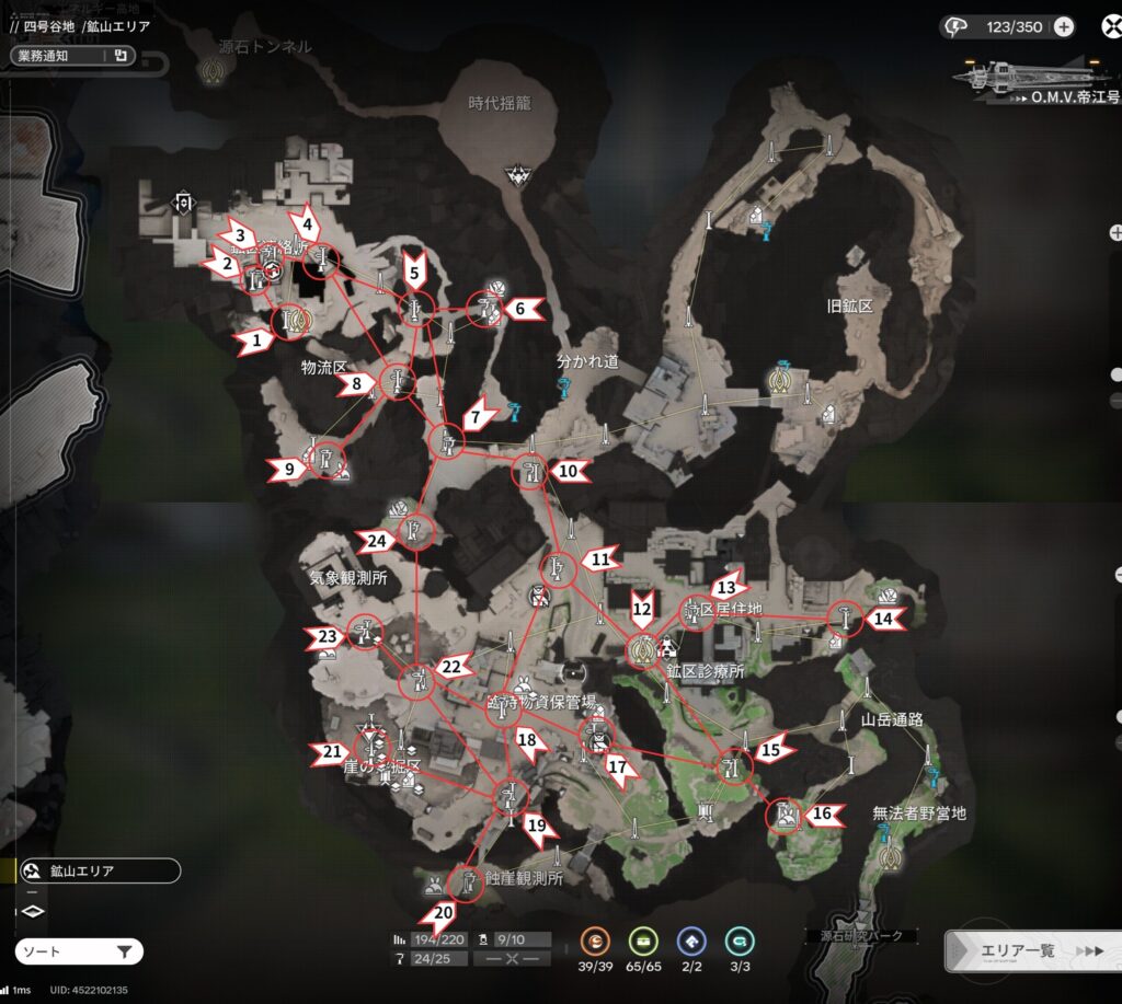 鉱山エリアは配達依頼で回ることが多いので、ジップラインルートの確保をおすすめします。ジップラインが上限で置けない場合は配達依頼のルートは確保しつつ、徒歩で行ける部分は削減するなど工夫してみてください。