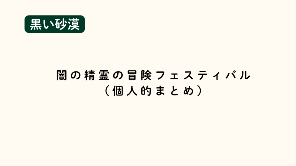 闇の精霊の冒険フェスティバル(個人的まとめ)
